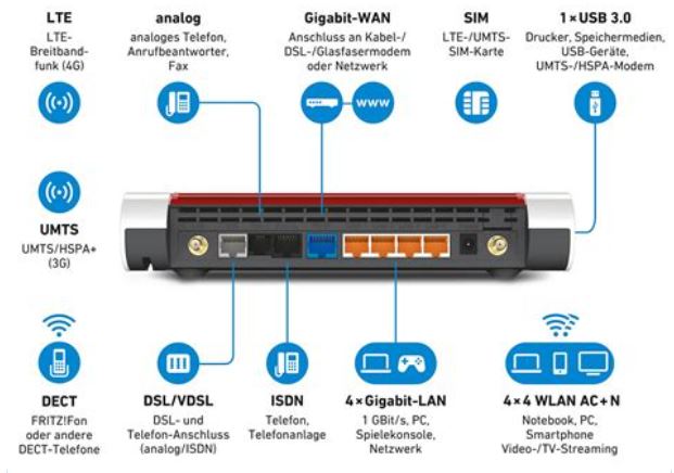 • LTE category 6 modem (FDD) with up to 300 Mbit/s on the internet
